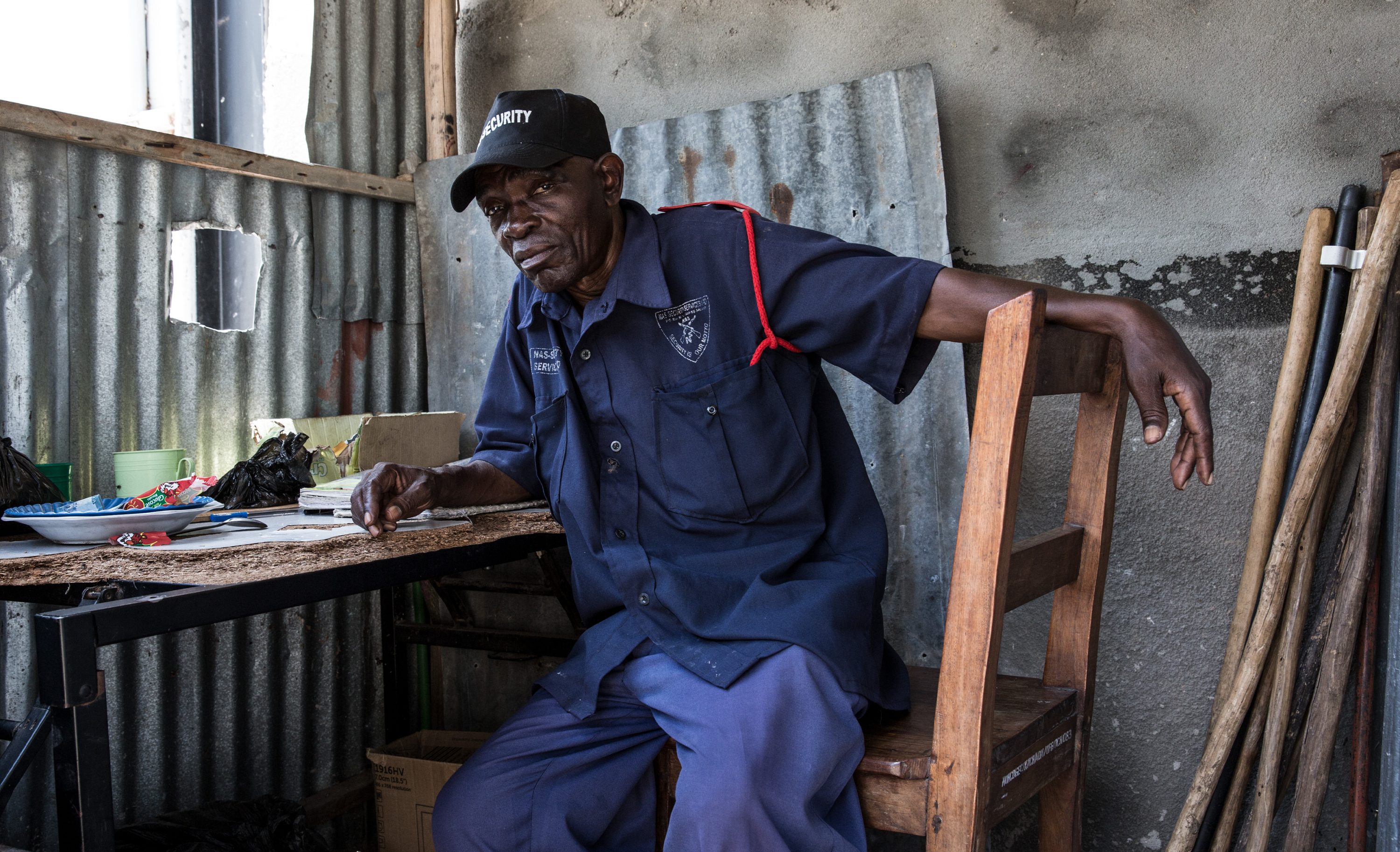 We look in, stopped ‘held to attention’ by the gaze of an ‘other.’ There is a directness, a confidence, pride exuded – click – the image is taken written into history, a sign and index of a moment. There is a documentary element to Sullam’s latest work ‘Askari/Security guards,’ the images all lined up, a work force of protection, identities caught, displaced, set before us the viewer. The work arrests the eye, no longer can we wander by or drive through we are faced with these photographic portraits that raise questions concerning identity, power.